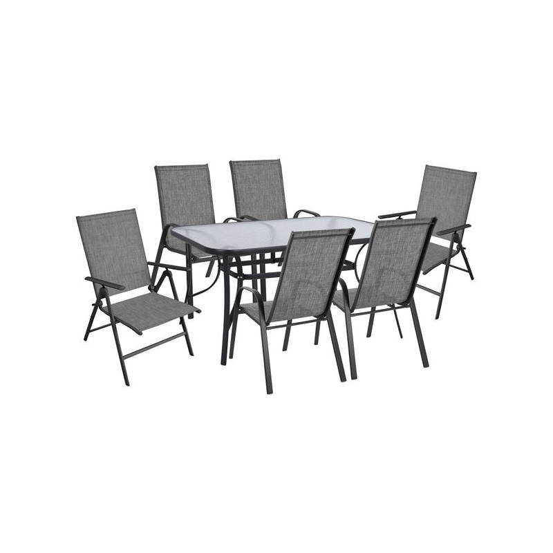 ΣΕΤ ΤΡΑΠΕΖΑΡΙΑΣ 7 ΤΜΧ ΜΕΤΑΛΛΙΚΗ ΜΕ 6 ΚΑΡΕΚΛΕΣ ΜΕ ΨΥΛΗ ΠΛΑΤΗ & ΤΡΑΠΕΖΙ 140x80 ΓΚΡΙ