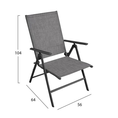 Σετ κήπου επεκτεινόμενο 5τμχ αλουμινίου πτυσσόμενες πολυθρόνες 7 θέσεων ψήλη πλάτη ανθρακί χρώμα HYT-068AL 135/270x90x76εκ