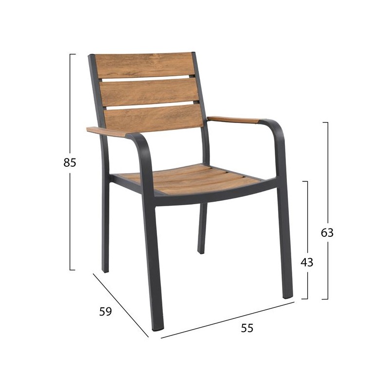 Σετ κήπου τραπεζαρία ροτόντα 7τμχ αλουμινίου πολυθρόνες με polywood στα μπράτσα σε ανθρακί χρώμα Φ120x75εκ