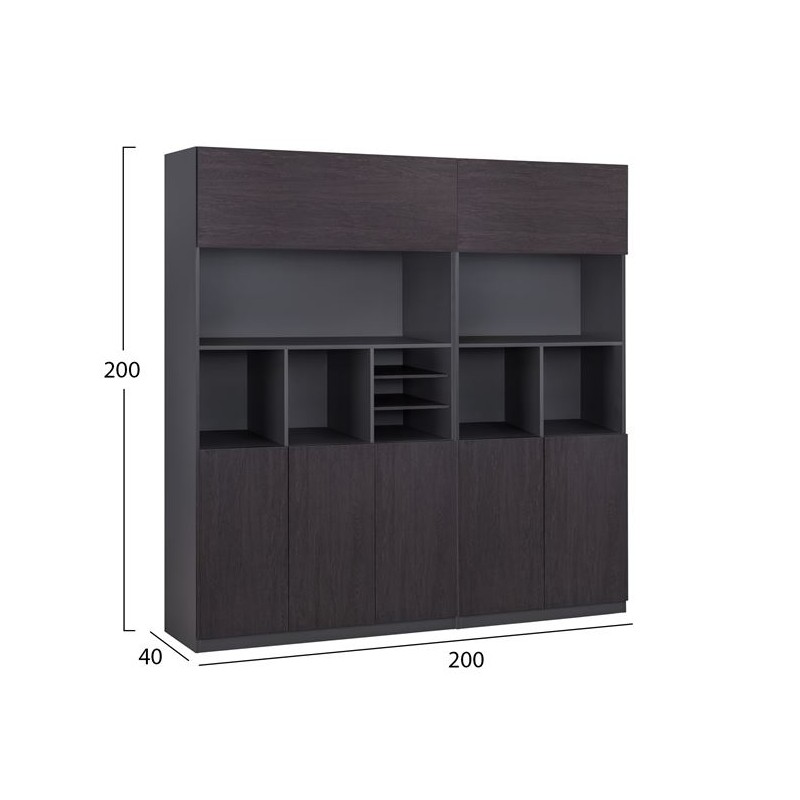 Ντουλάπι βιβλιοθήκη γραφείου 2φηλη με κλειδαριά και ράφια σταχτί χρώμα 72x34x187 εκ