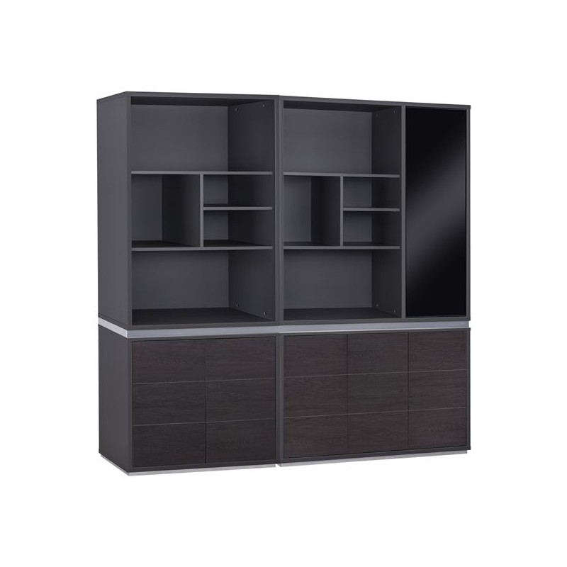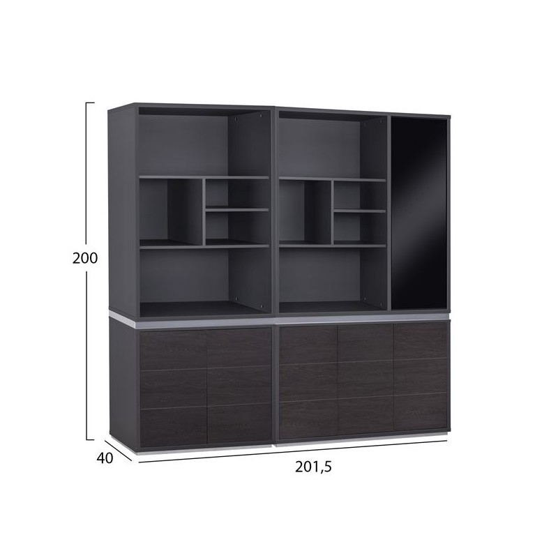 Βιβλιοθήκη σετ 3τεμ στήλες σταχτί δαπέδου και τοίχου μελαμίνης με δώδεκα χώρους 146x30x125εκ