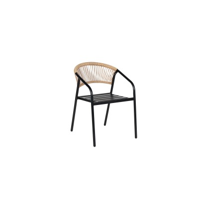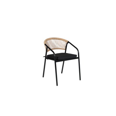 Πολυθρόνα μαύρη με μπεζ ραταν Matiz μεταλλική με μαξιλάρι επαγγελματική SC-036C